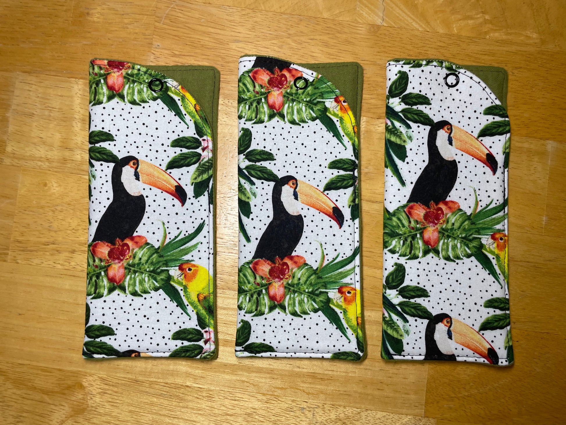 Made from cotton and flannel with fleece interior for padding. Snap closure.